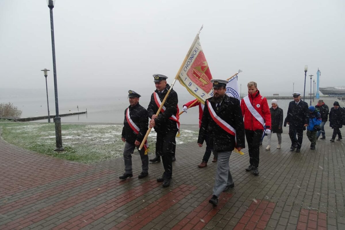 Po mszy świętej poczty sztandarowe ChKŻ i WOPR poprowadziły kolumnę gości do uroczystego apelu zdjęcia bandery, gdzie Komandor Dariusz Jasnowski oficjalnie zakończył sezon 2023.