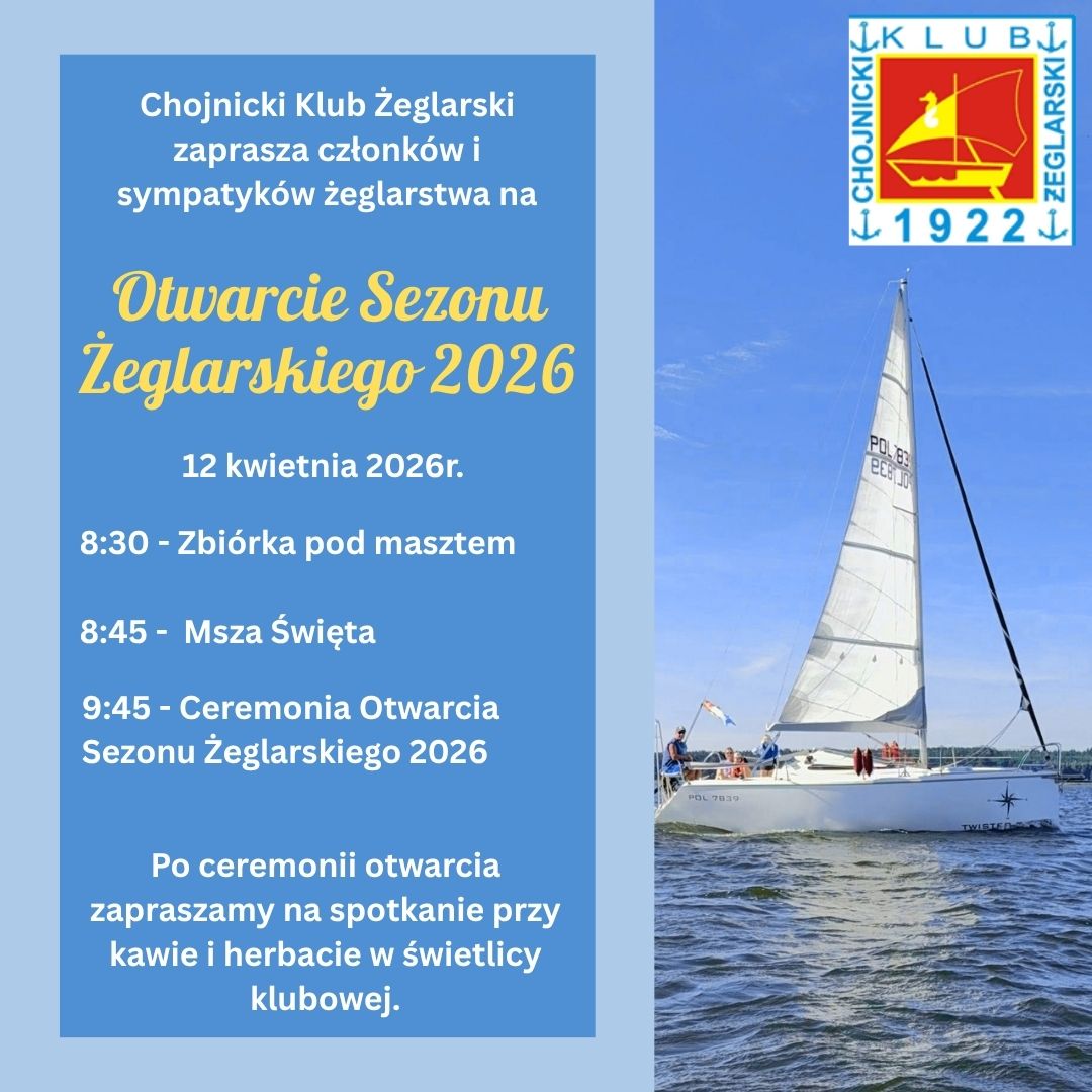 Chojnicki Klub Żeglarski ma przyjemność zaprosić wszystkich sympatyków żeglarstwa na uroczyste